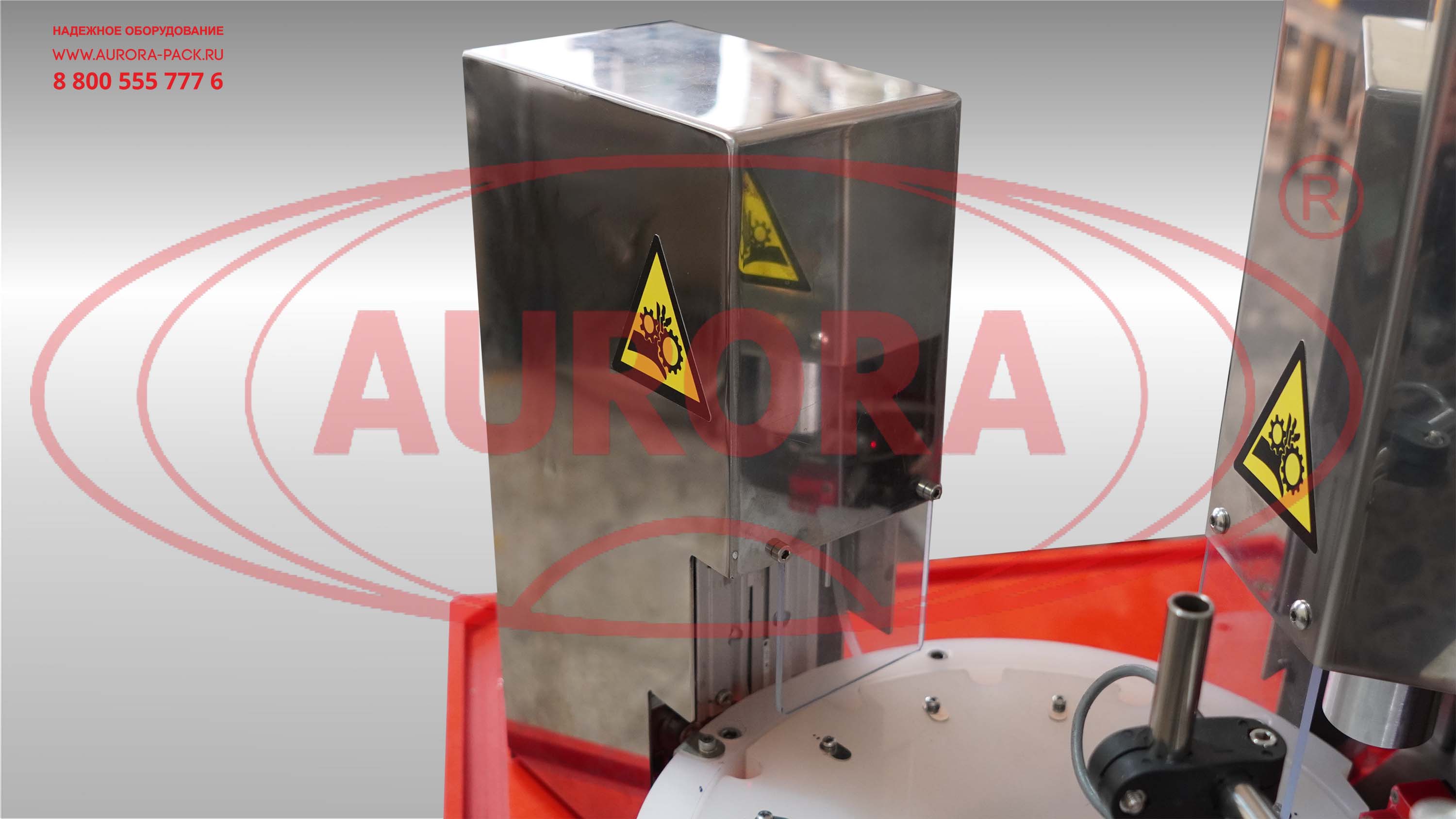 Флаконы вручную устанавливаются в пазы позиционирующего диска. Датчик отслеживает наличие тары и подает сигнал на запуск процесса дозирования. После розлива наполненный флакон перемещается в зону закрутки колпачка. Предварительно оператор вручную устанавливает колпачок. Тара фиксируется прижимом, работа которого синхронизирована с датчиком, подающим сигнал на остановку позиционирующего диска. Укупорочная голова опускается и выполняет процесс закрутку колпачка. Далее тара перемещается в зону выгрузки.Основные элементы